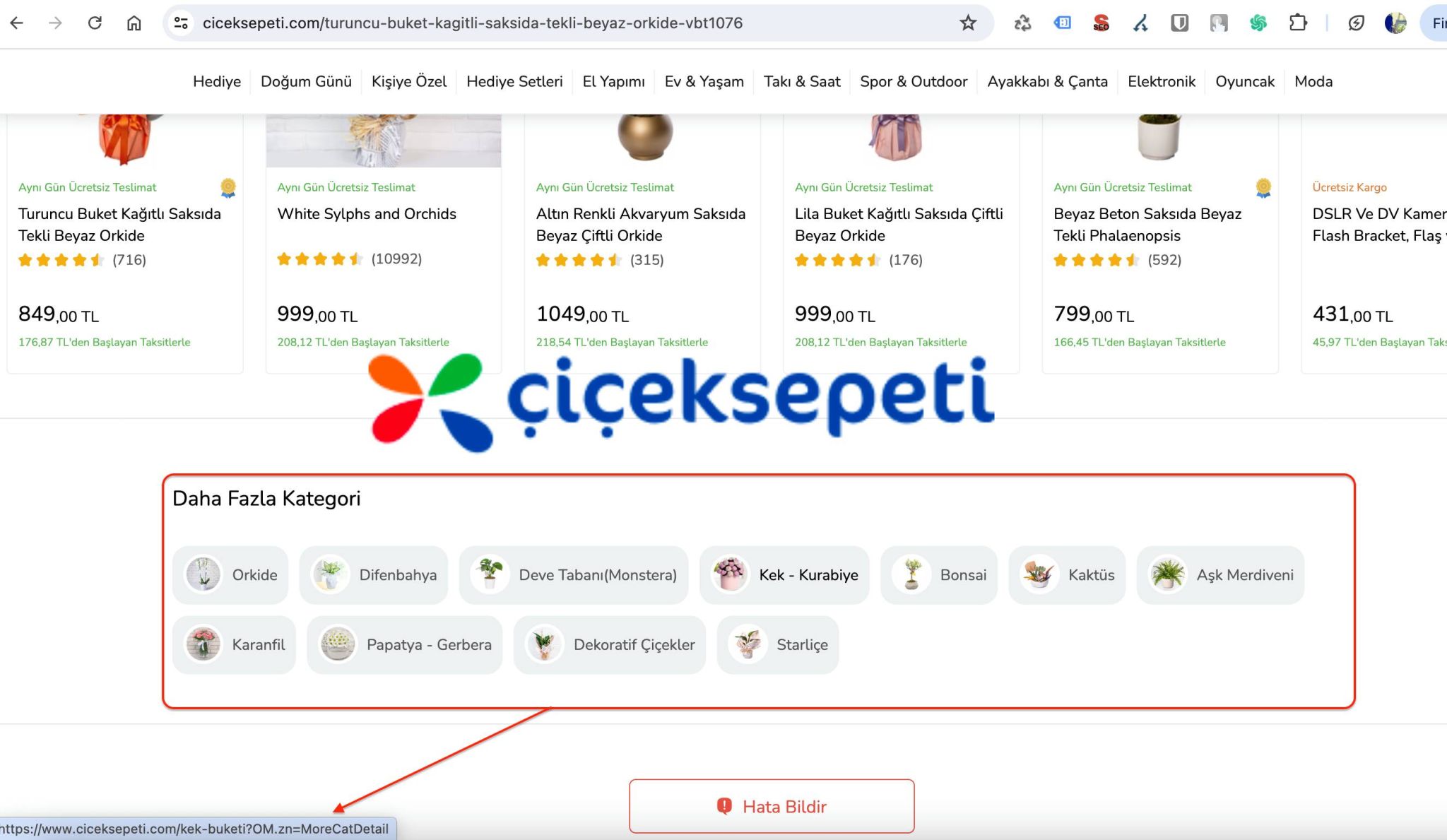 örn: ürün sayfalarından linklenen kategori URL’leri