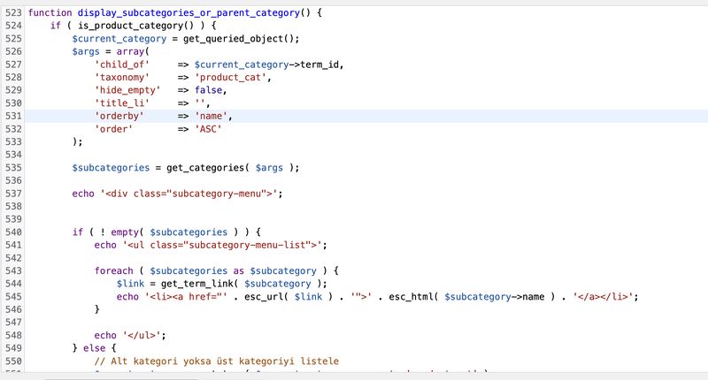 WooCommerce ürün listeleme sayfasında, alt kategori veya üst kategoriyi listeleyerek kullanıcıların gezinmesini kolaylaştırabilirsiniz.